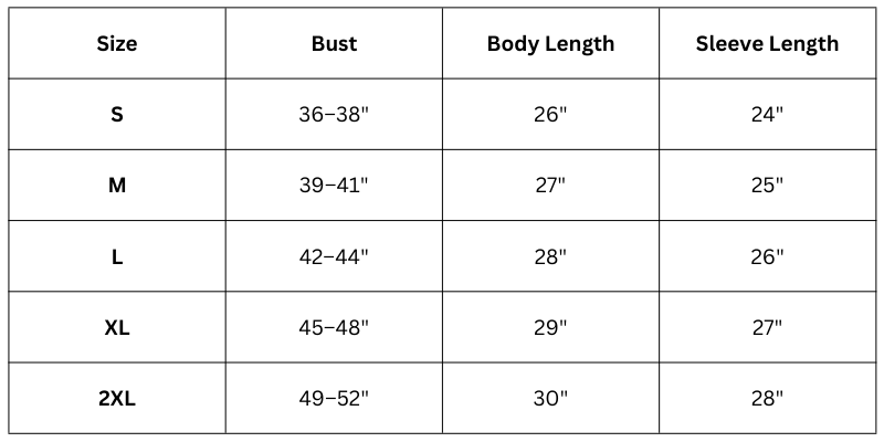 Size Chart (Inches):